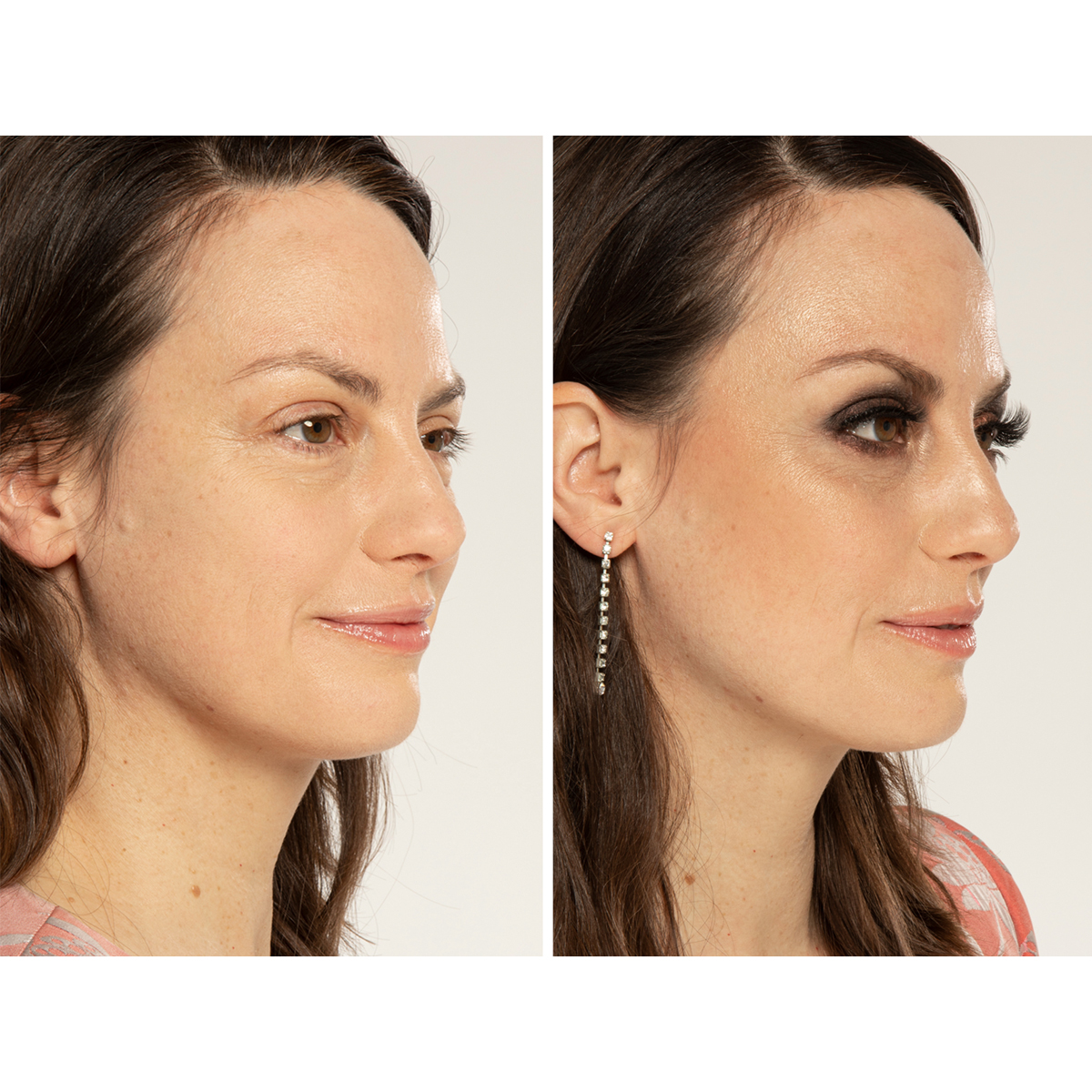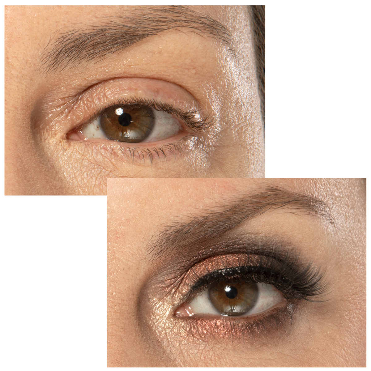 Halte das Wimpernband mittig fest (mit Deinen Fingern oder unserem praktischen MAGIC LASHY Applicator). Nun schließt Du ein Auge und platzierst die Bandwimper so nah wie möglich an Deinem natürlichen Wimpernkranz direkt auf den Lidstrich. Beginne hierzu im inneren Augenwinkel und drücke die Wimpern vorsichtig Stück für Stück mit dem Applicator oder Deinem Finger auf den Eyeliner.